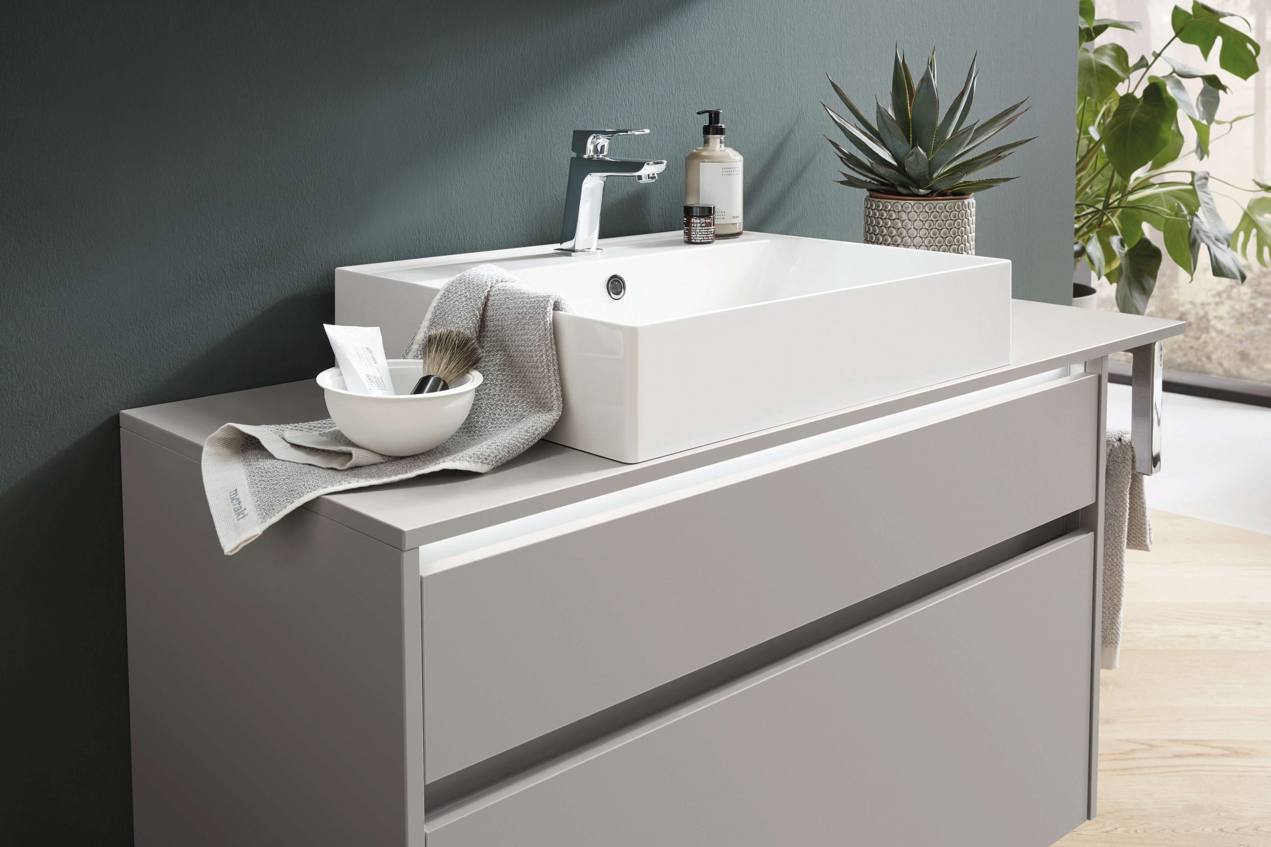 Mit facettierten, matten Fronten schaffen Sie einen gemütlichen bis lässigen Scandi-Look in Ihrem Bad.