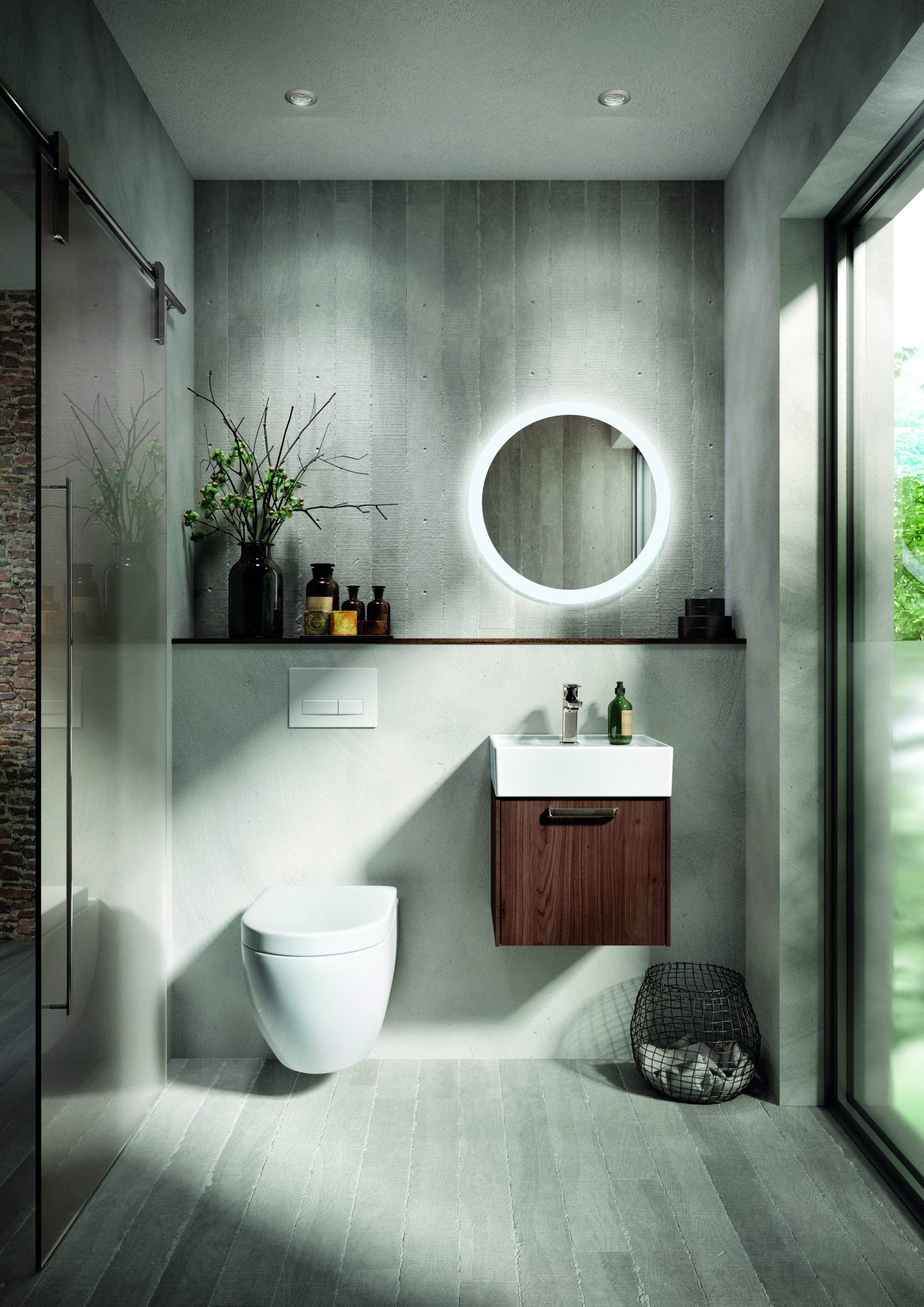 Steingraue Schiefer-Elemente setzen in jedem Bad kultivierte Highlights.